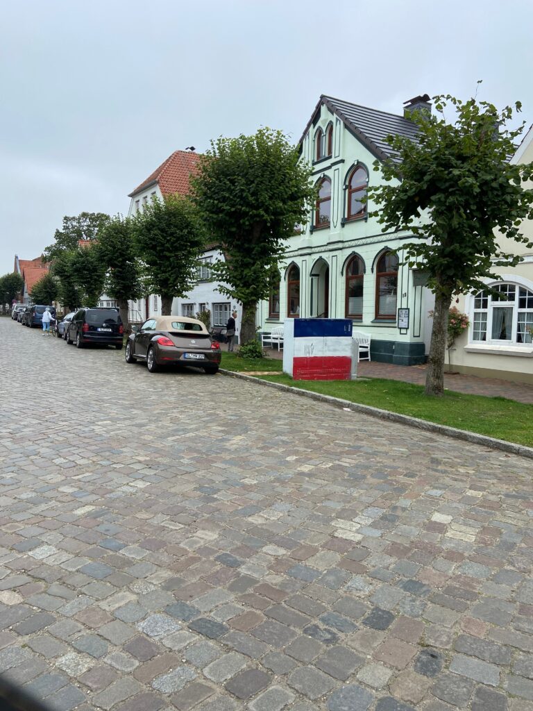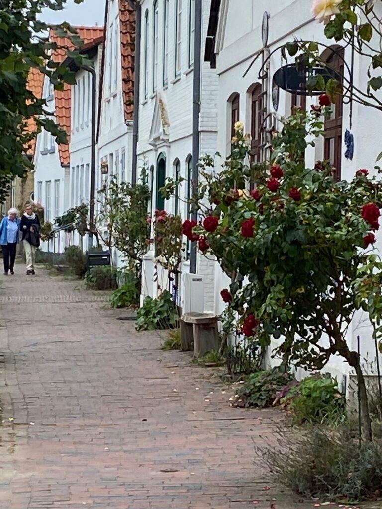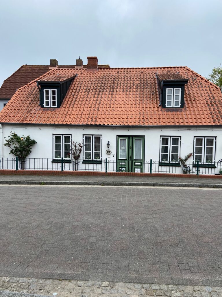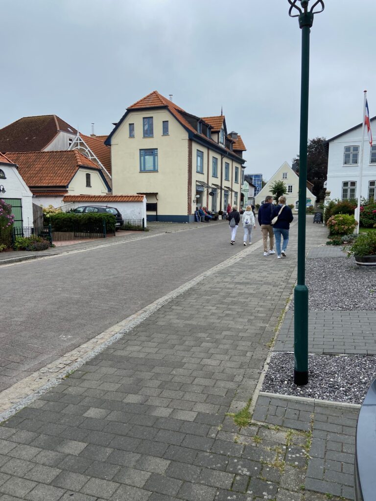Ein Spaziergang durch Arnis führt entlang der typischen schmalen Straße, die sich durch den gesamten Ort zieht. Links und rechts stehen gepflegte Häuser, kleine Gärten und traditionelle Zäune. Alles wirkt ruhig, freundlich und fast ein wenig entschleunigt.