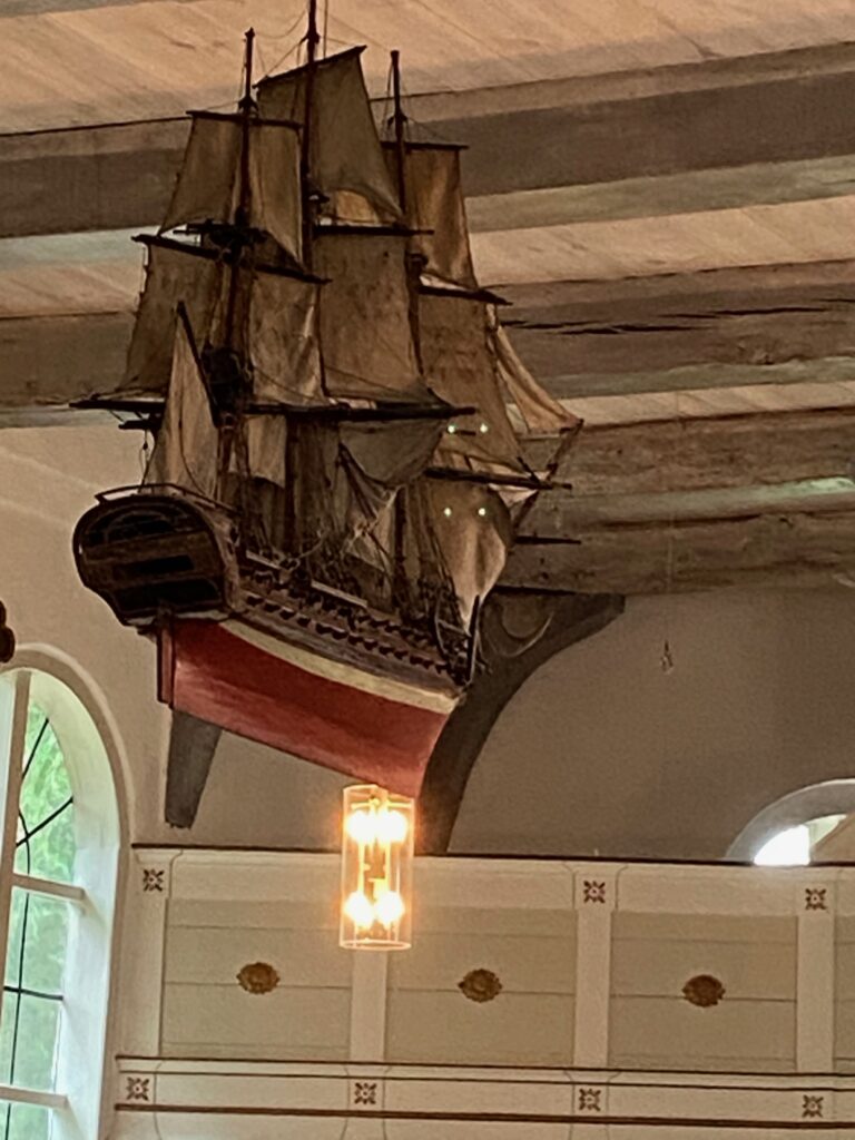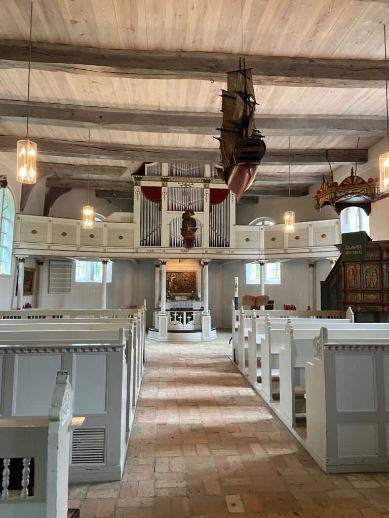 Die Kirche fügt sich wunderbar in das historische Ortsbild ein und macht deutlich, wie eng Arnis seit jeher mit der Schifffahrt und der Schlei verbunden ist.